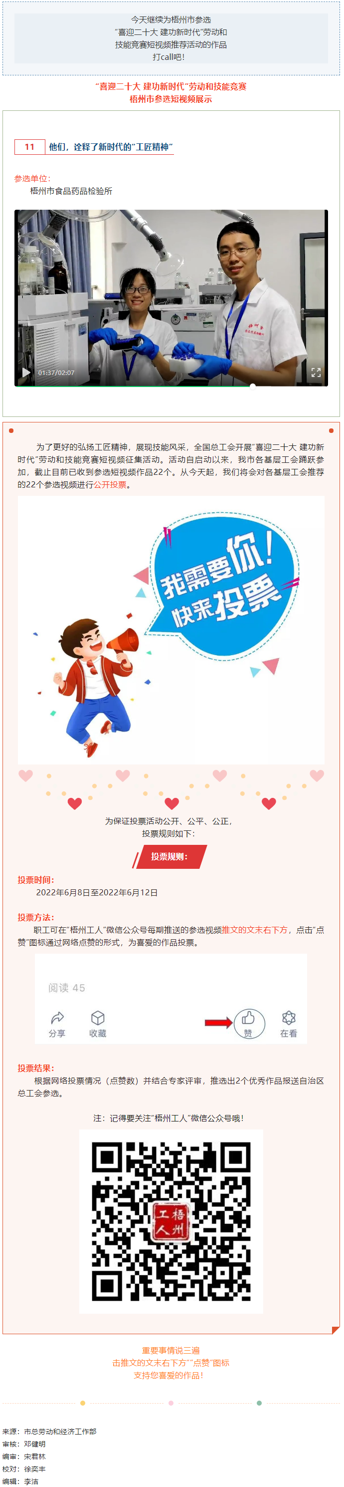 梧州市食品藥品檢驗(yàn)所參選作品丨“喜迎二十大 建功新時(shí)代” 勞動(dòng)和技能競(jìng)賽短視頻投票活動(dòng)開(kāi)始啦!