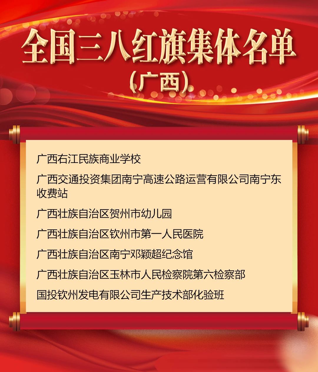 點(diǎn)贊!廣西9人7集體獲“全國(guó)三八紅旗手(集體)”稱號(hào)