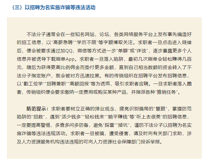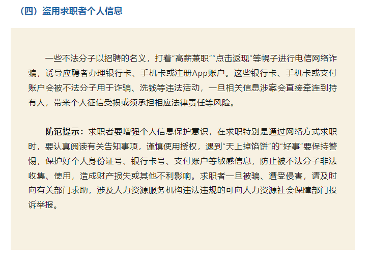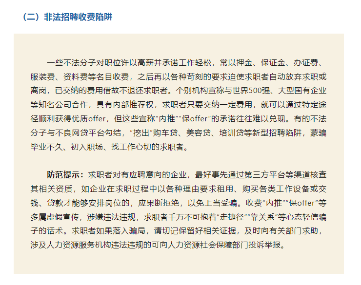 為進一步引導(dǎo)人力資源服務(wù)機構(gòu)誠信服務(wù)、規(guī)范用人單位招用工,幫助廣大勞動者提高風險防范意識和自我保護能力,本文梳理人力資源市場主體在求職招聘活動中的主要法律義務(wù)、求職風險及防范提示,供勞動者求職擇業(yè)參考。