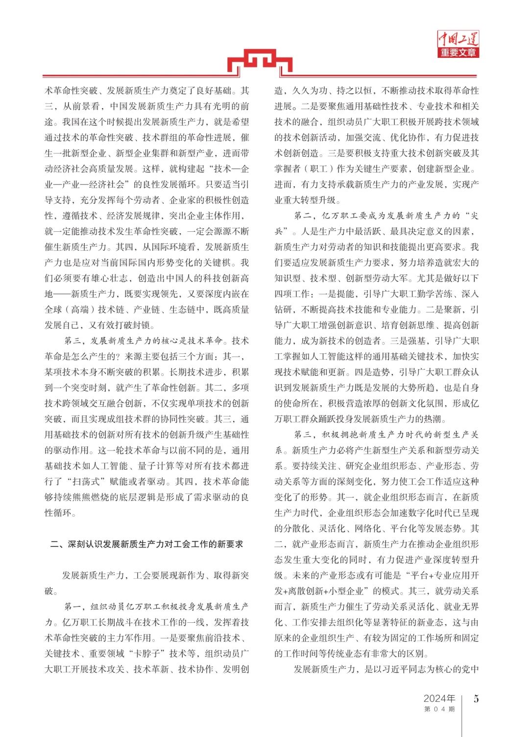 二、深刻認識發(fā)展新質生產(chǎn)力對工會工作的新要求